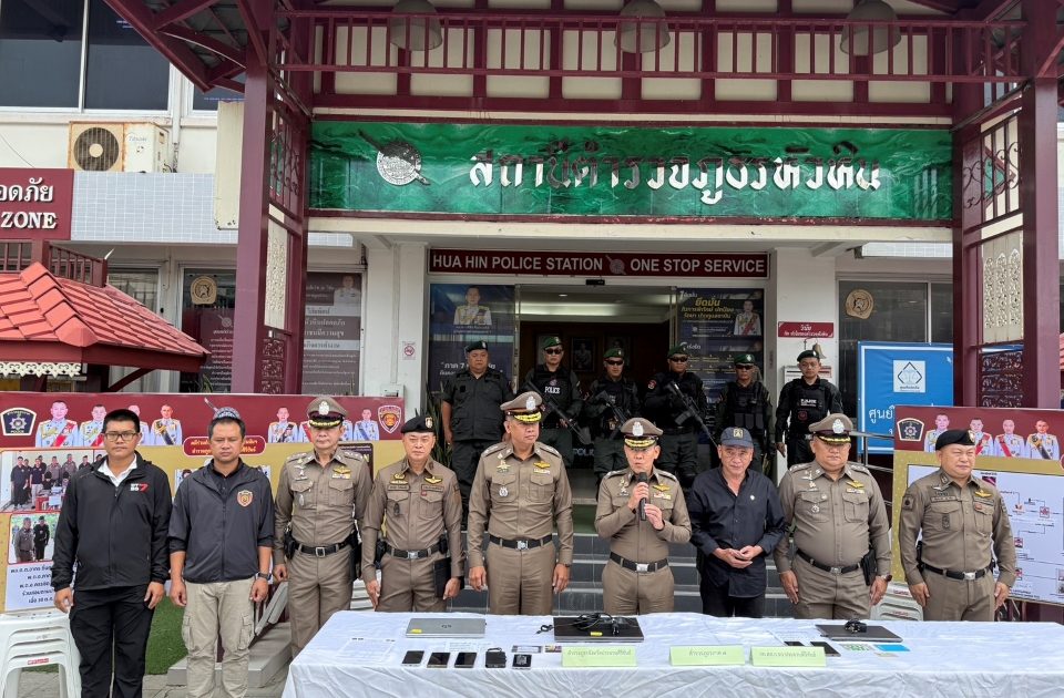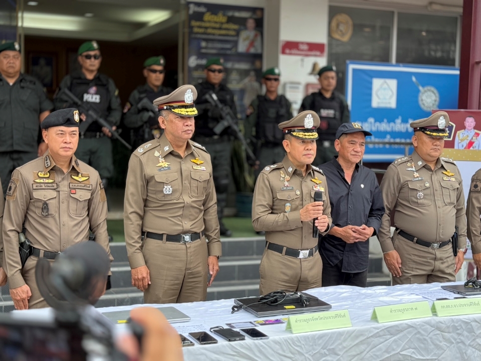 ผู้บังคับการตำรวจภูธรจังหวัดประจวบคีรีขันธ์ ร่วมแถลงข่าว กรณีจับกุมเครือข่ายเว็บพนันออนไลน์