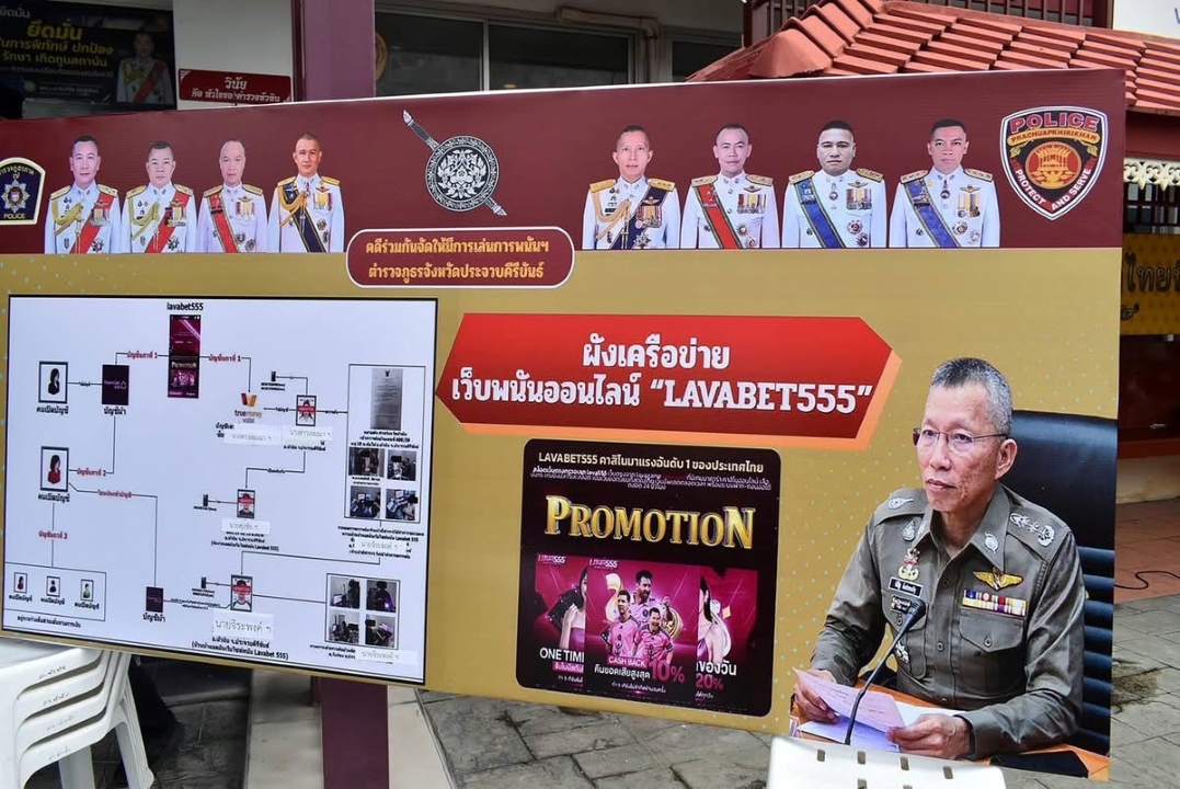 จับกุมเครือข่ายเว็บพนันออนไลน์ “Lavabet555” ผู้ต้องหาจำนวน 3 ราย ในพื้นที่รับผิดชอบ สภ.หัวหิน และสภ.ปราณบุรี ซึ่งตรวจสอบพบเงินหมุนเวียนในระบบกว่า 367 ล้านบาท