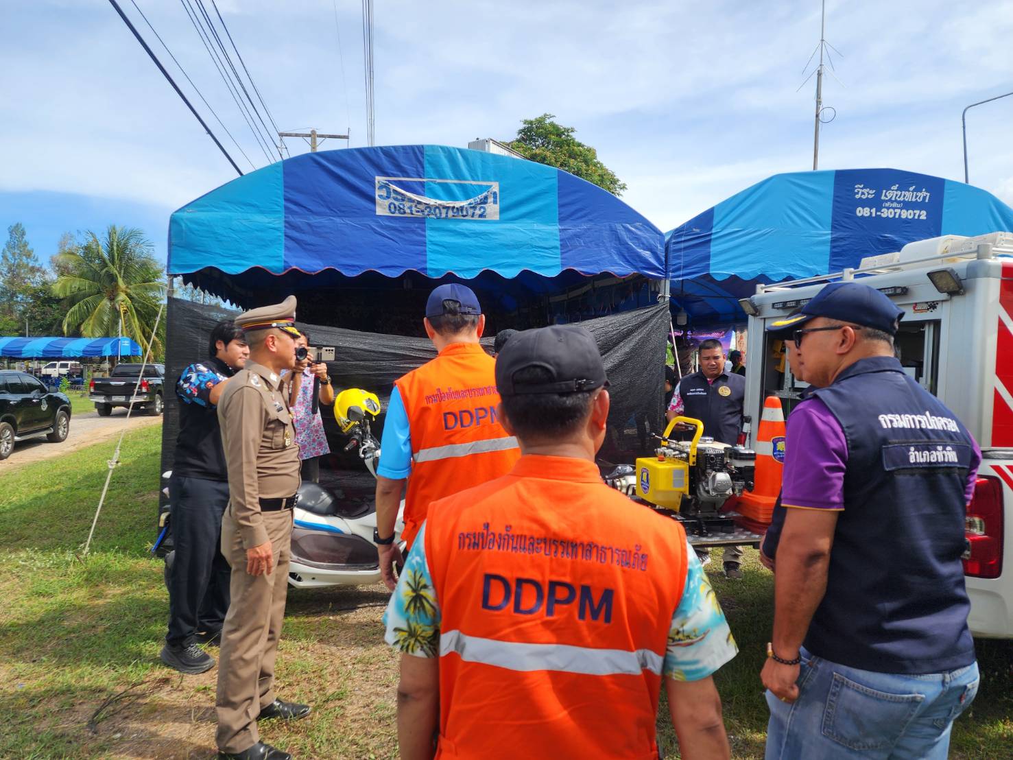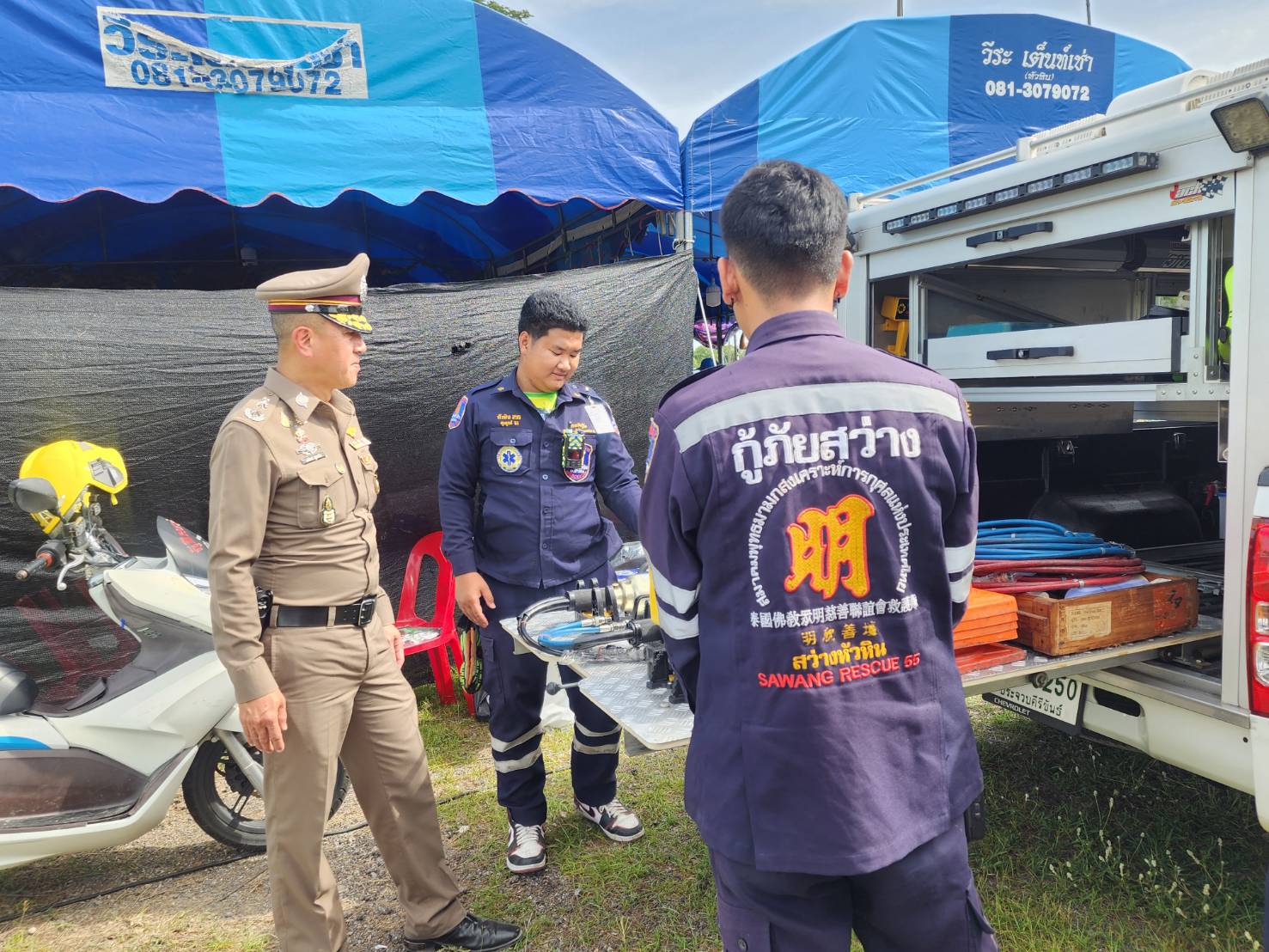 วันที่ 12 เม.ย.68 เวลา 15.00 น. พล.ต.ต.นครินทร์ สุคนธวิท ผบก.ภ.จว.ประจวบคีรีขันธ์ พร้อมด้วย พ.ต.อ.กัมปนาท ณ วิชัย ผกก.สภ.หัวหิน ร่วมตรวจเยี่ยมจุดตรวจและจุดบริการตามคำสั่งศูนย์อำนวยการความปลอดภัยทางถนนจังหวัดประจวบคีรีขันธ์ โดยมี นายกิตติพงษ์ สุขภาคกุล รองผู้ว่าราชการจังหวัดประจวบคีรีขันธ์ พร้อมด้วยหน่วยงานที่เกี่ยวข้องร่วมตรวจเยี่ยมฯ ณ หน้าที่ว่าการอำเภอหัวหิน ถ.เพชรเกษมแนวใหม่ ม.10 ต.ทับใต้ อ.หัวหิน จ.ประจวบคีรีขันธ์ เหตุการณ์ปกติ