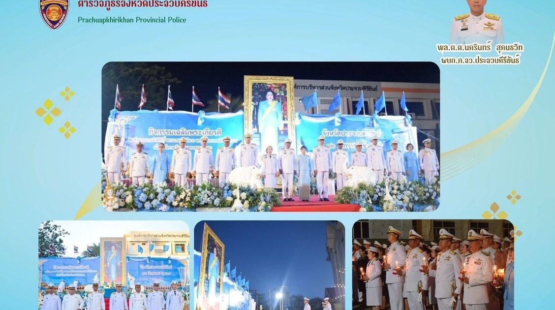 พร้อมด้วยข้าราชการตำรวจ ฝอ.ภ.จว.ประจวบคีรีขันธ์ ร่วมพิธีถวายเครื่องราชสักการะ วางพานพุ่ม และพิธีจุดเทียนถวายพระพรชัยมงคล เนื่องในวันเฉลิมพระชนมพรรษา สมเด็จพระนางเจ้าสิริกิติ์ พระบรมราชินีนาถ พระบรมราชชนนีพันปีหลวง