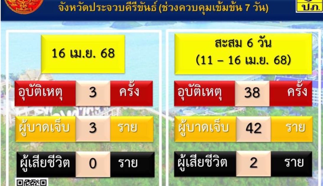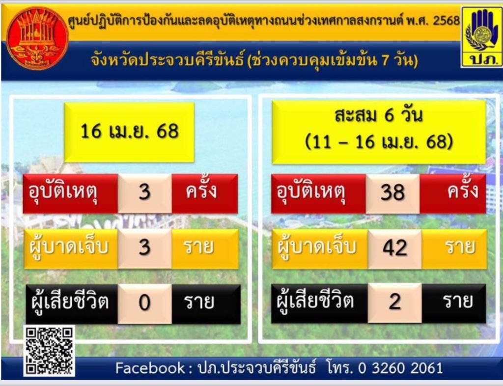 สถิติการเกิดอุบัติเหตุทางถนนช่วงเทศกาลสงกรานต์ พ.ศ.2568 ประจำวันที่ 16 เม.ย.68