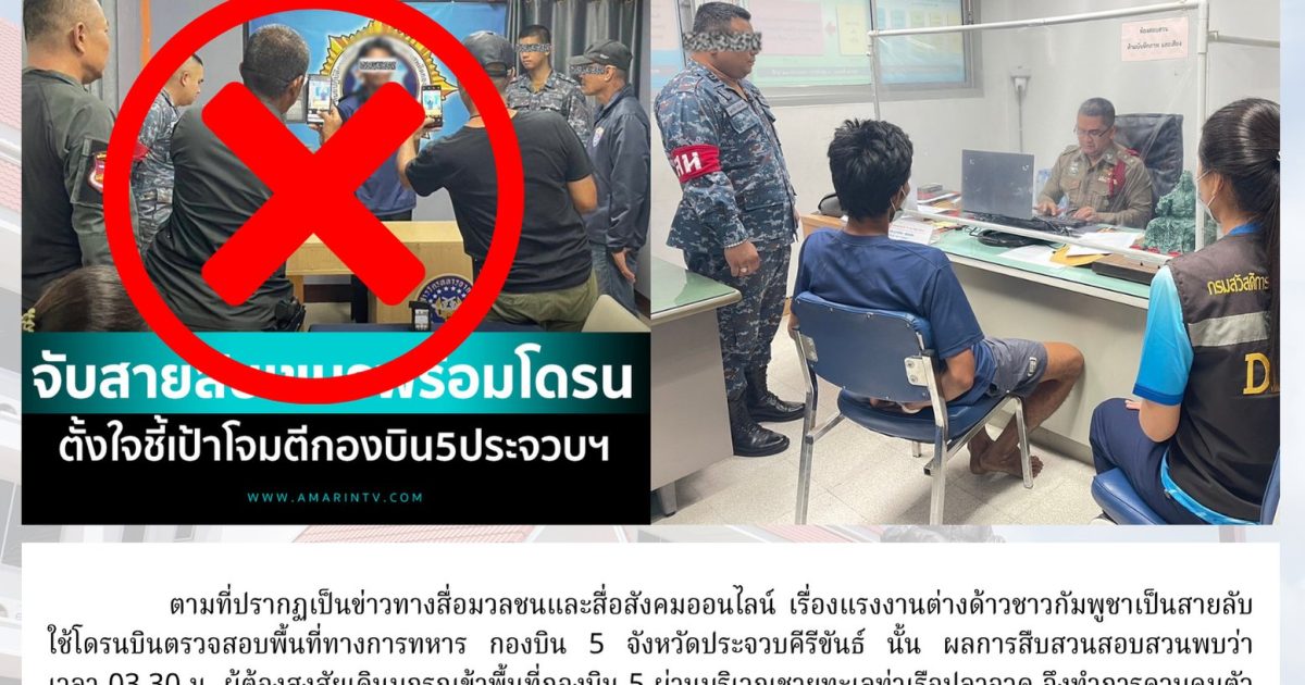 ประชาสัมพันธ์ กรณีการจับกุมแรงงานต่างด้าวชาวกัมพูชาในพื้นที่ กองบิน 5 จังหวัดประจวบคีรีขันธ์