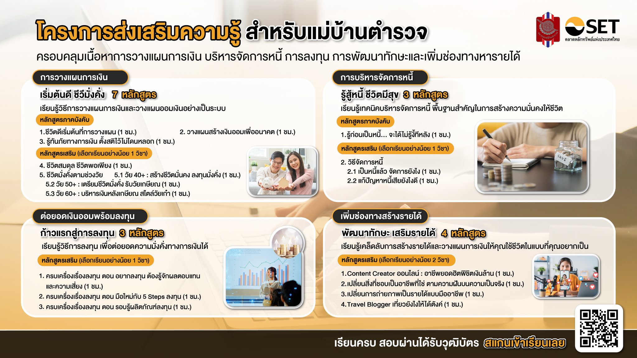 เพิ่มพูนความรู้ด้านการวางแผนเงิน การจัดการหนี้ การลงทุน และการหารายได้เสริม