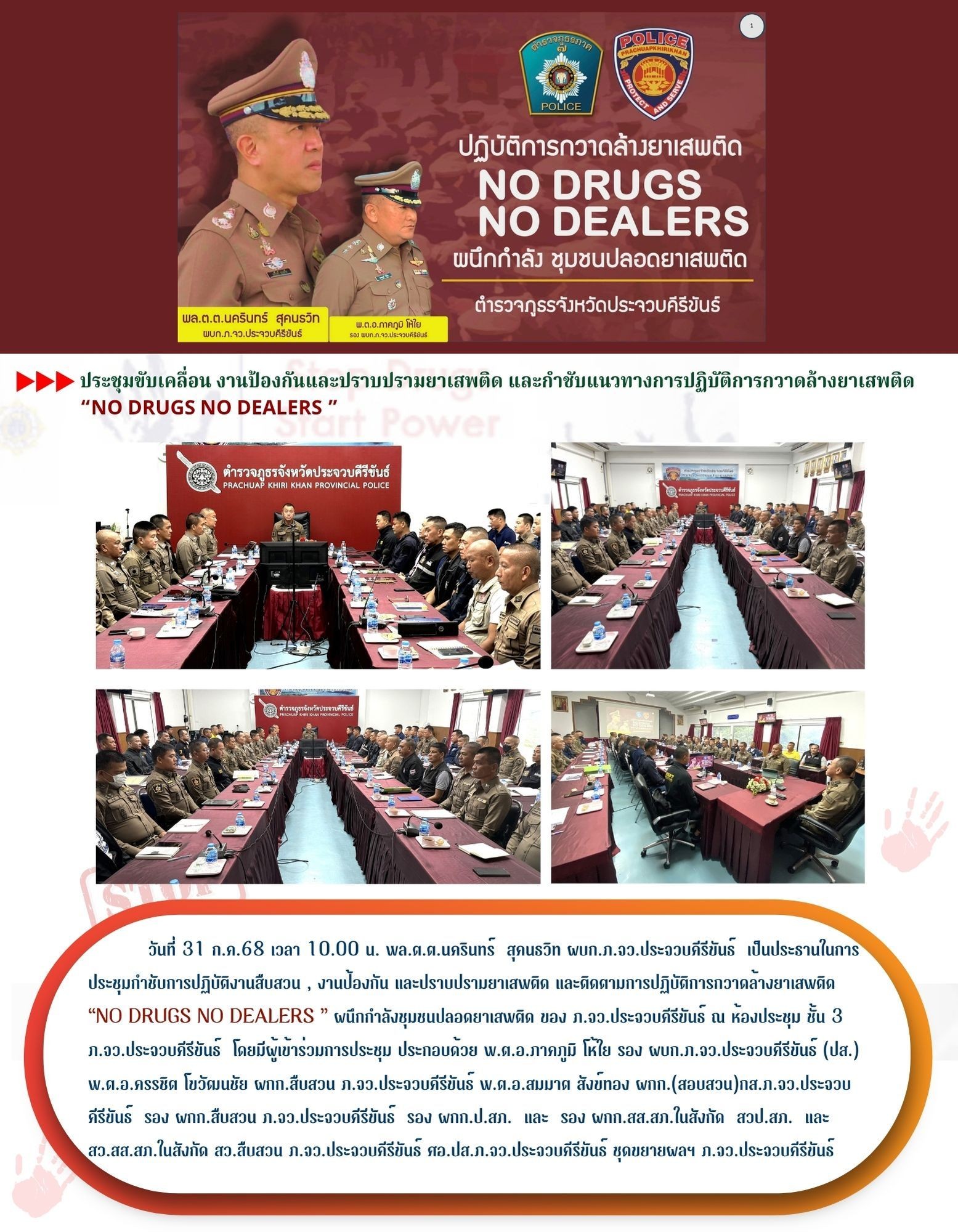 วันที่ 1 ส.ค. 68 เวลา 08.30 น. – พล.ต.ต.นครินทร์ สุคนธวิทผบก.ภ.จว.ประจวบคีรีขันธ์ พร้อมด้วย &