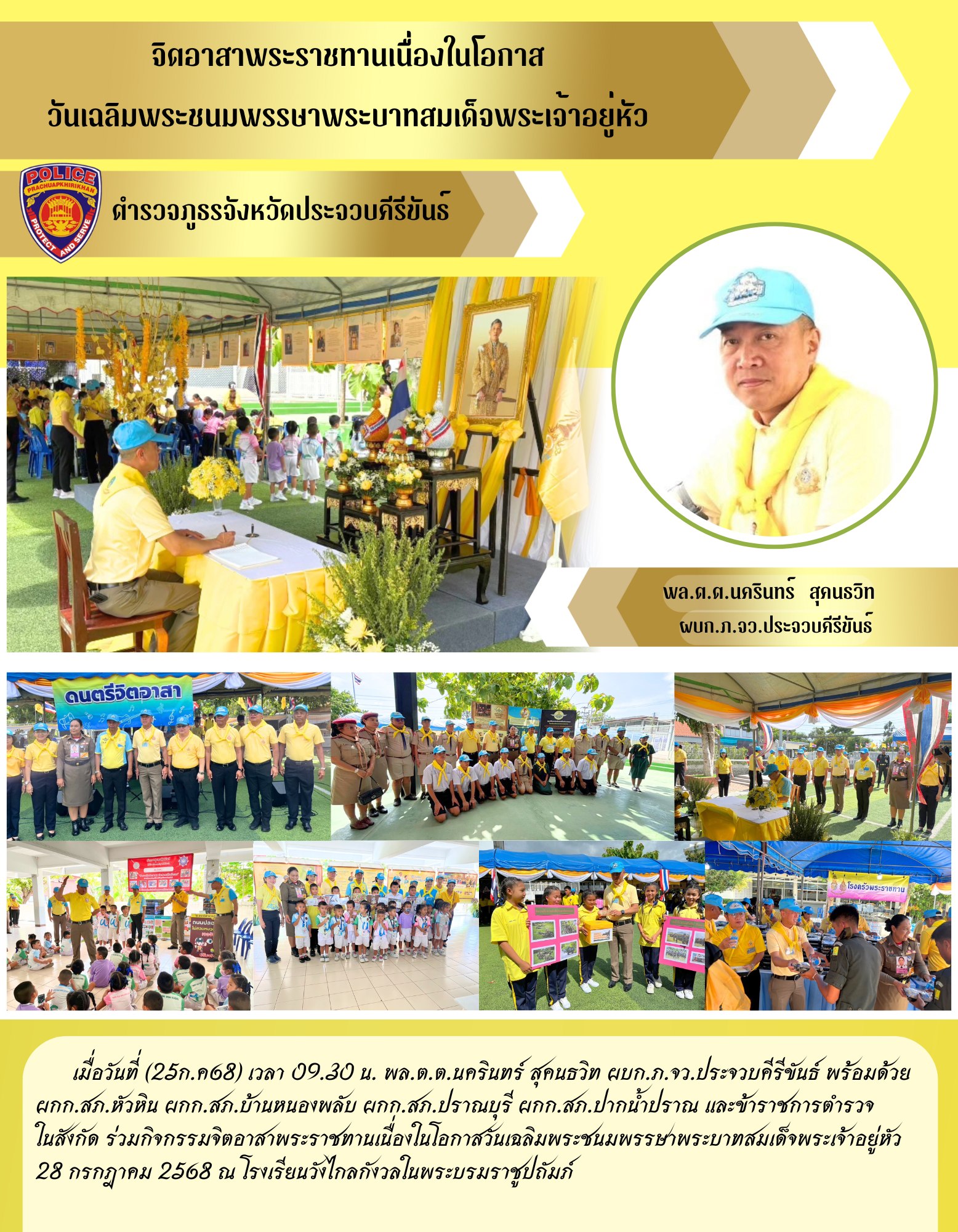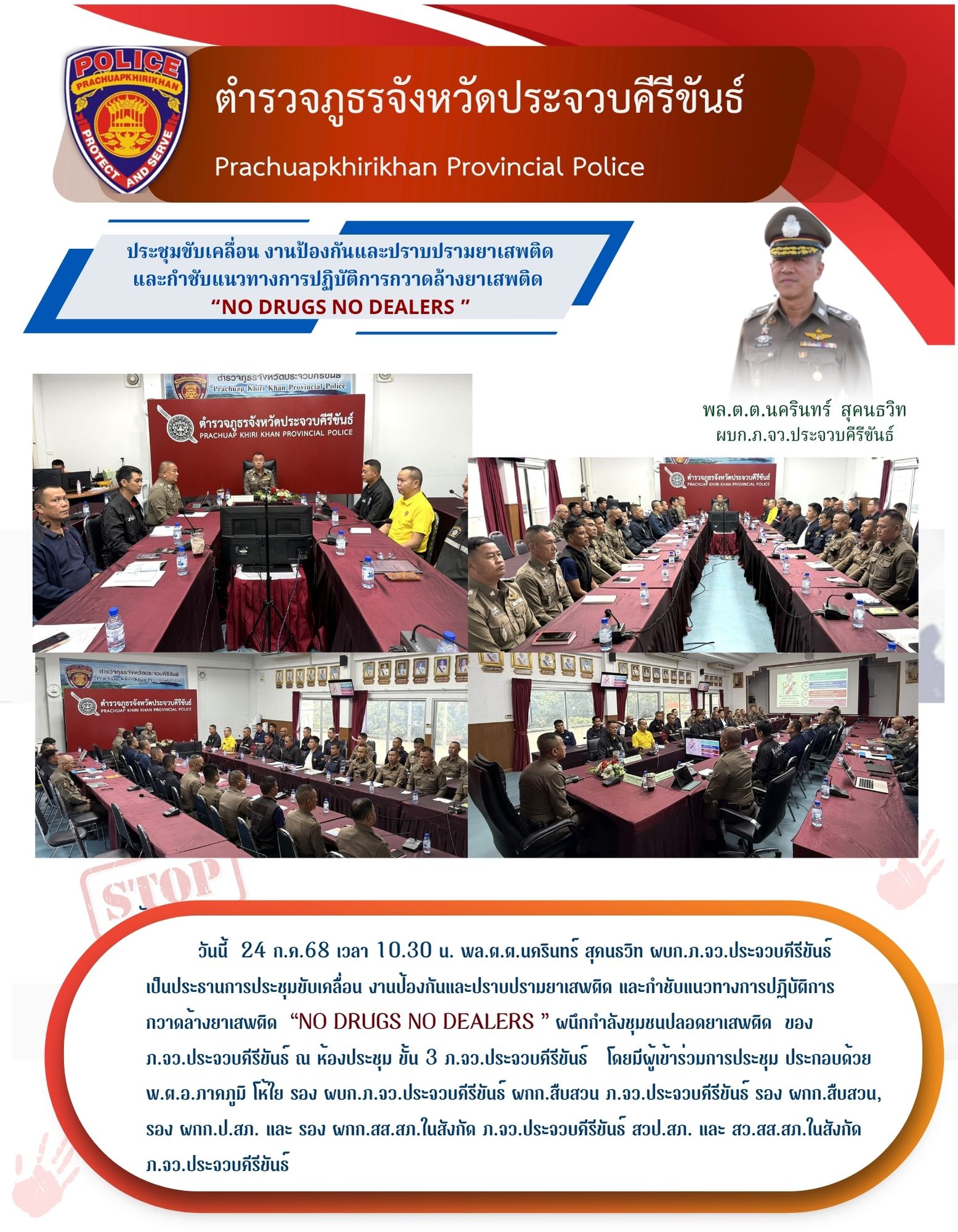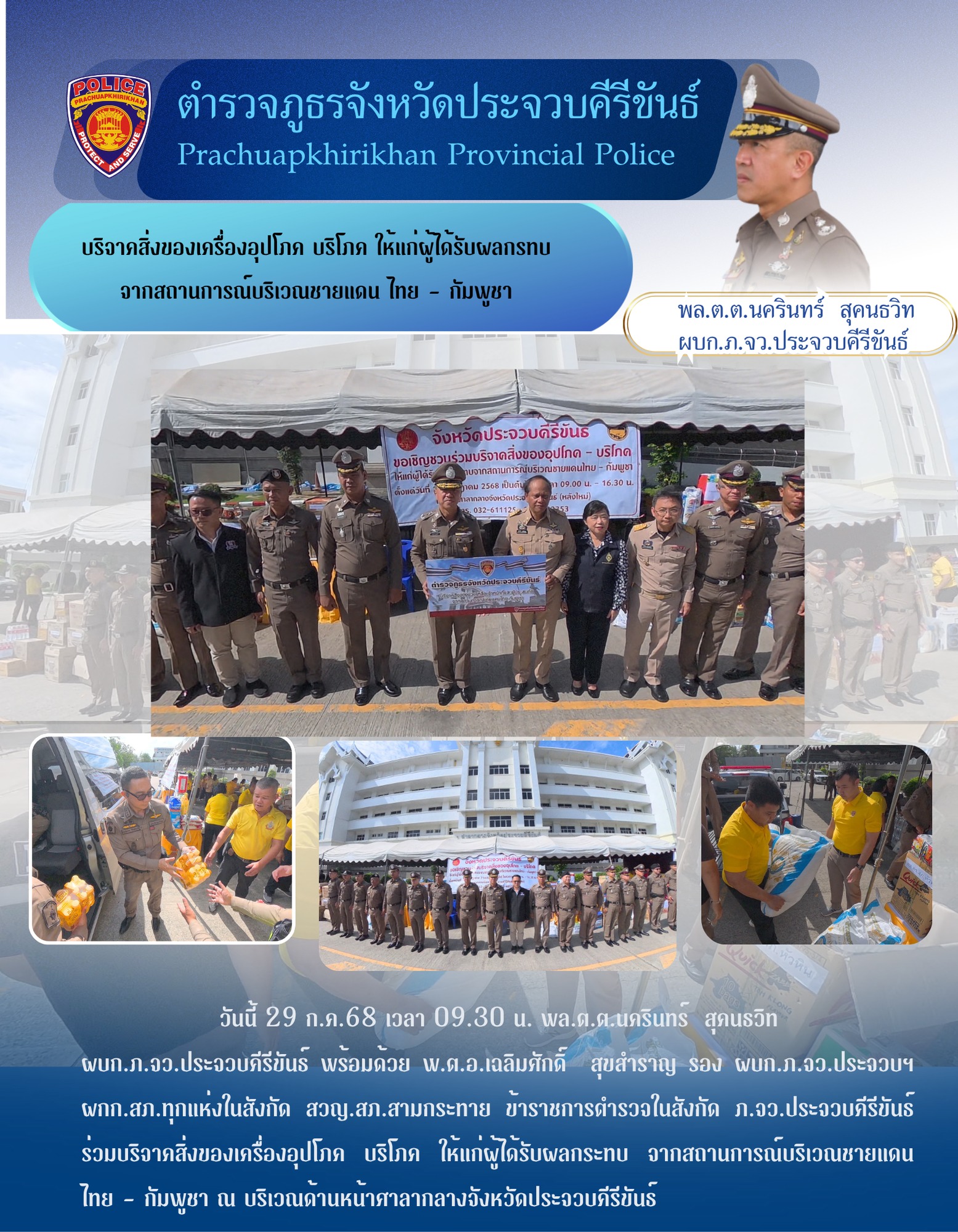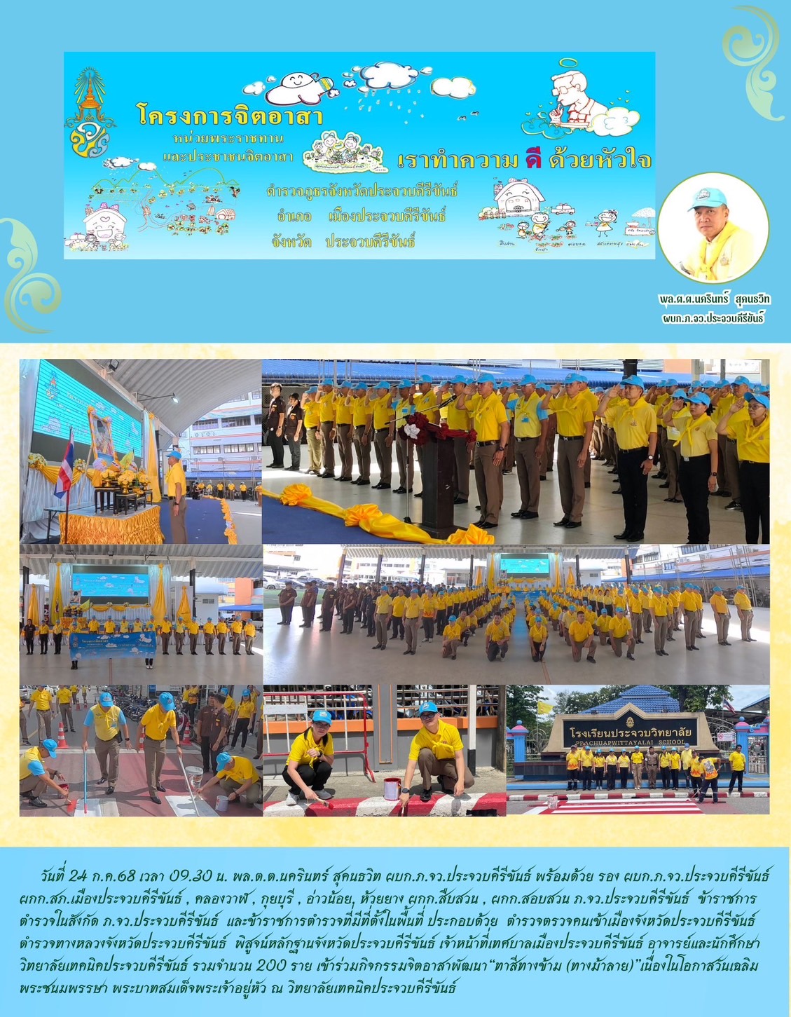 วันที่ 29 ก.ค.68 เวลา 14.00 น. – พล.ต.ต.นครินทร์ สุคนธวิทผบก.ภ.จว.ประจวบคีรีขันธ์ เข้าร่วมการป