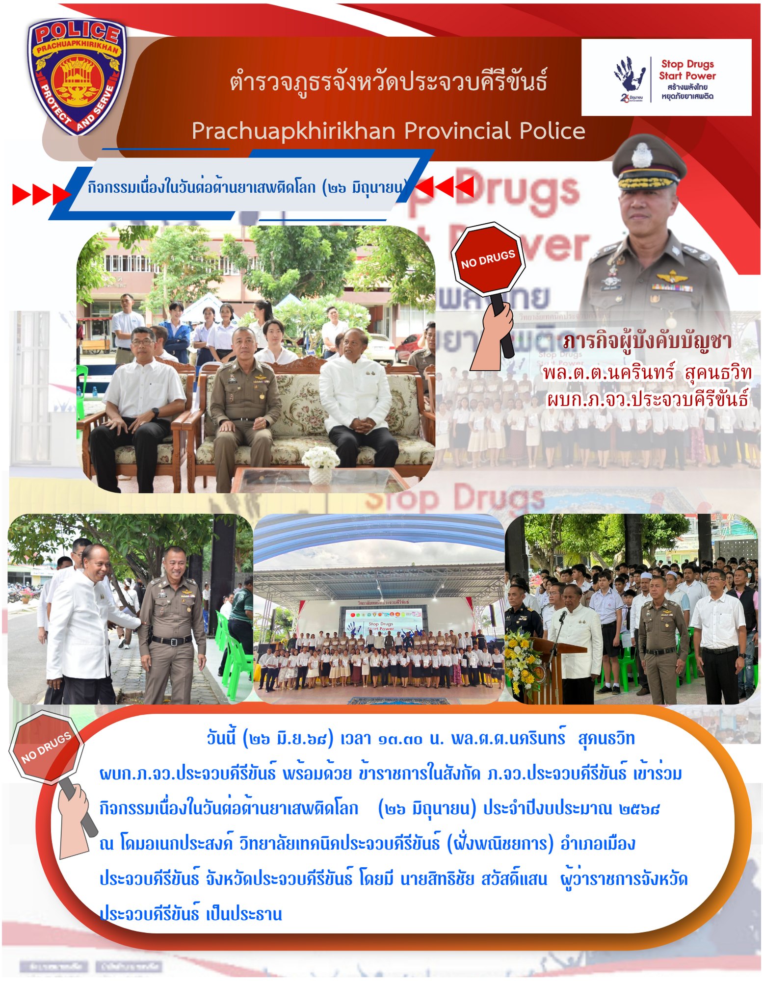 ร่วมกิจกรรมเนื่องในวันต่อต้านยาเสพติดโลก (26 มิถุนายน) ประจำปีงบประมาณ 2568 ณ โดมอเนกประสงค์ วิทยาลัยเทคนิคประจวบคีรีขันธ์ (ฝั่งพณิชยการ)