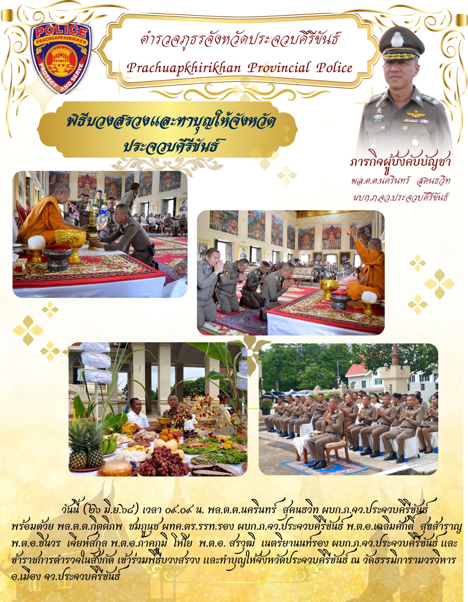 ร่วมพิธีบวงสรวง และทำบุญให้จังหวัดประจวบคีรีขันธ์ ณ วัดธรรมิการามวรวิหาร อ.เมือง จว.ประจวบคีรีขันธ์