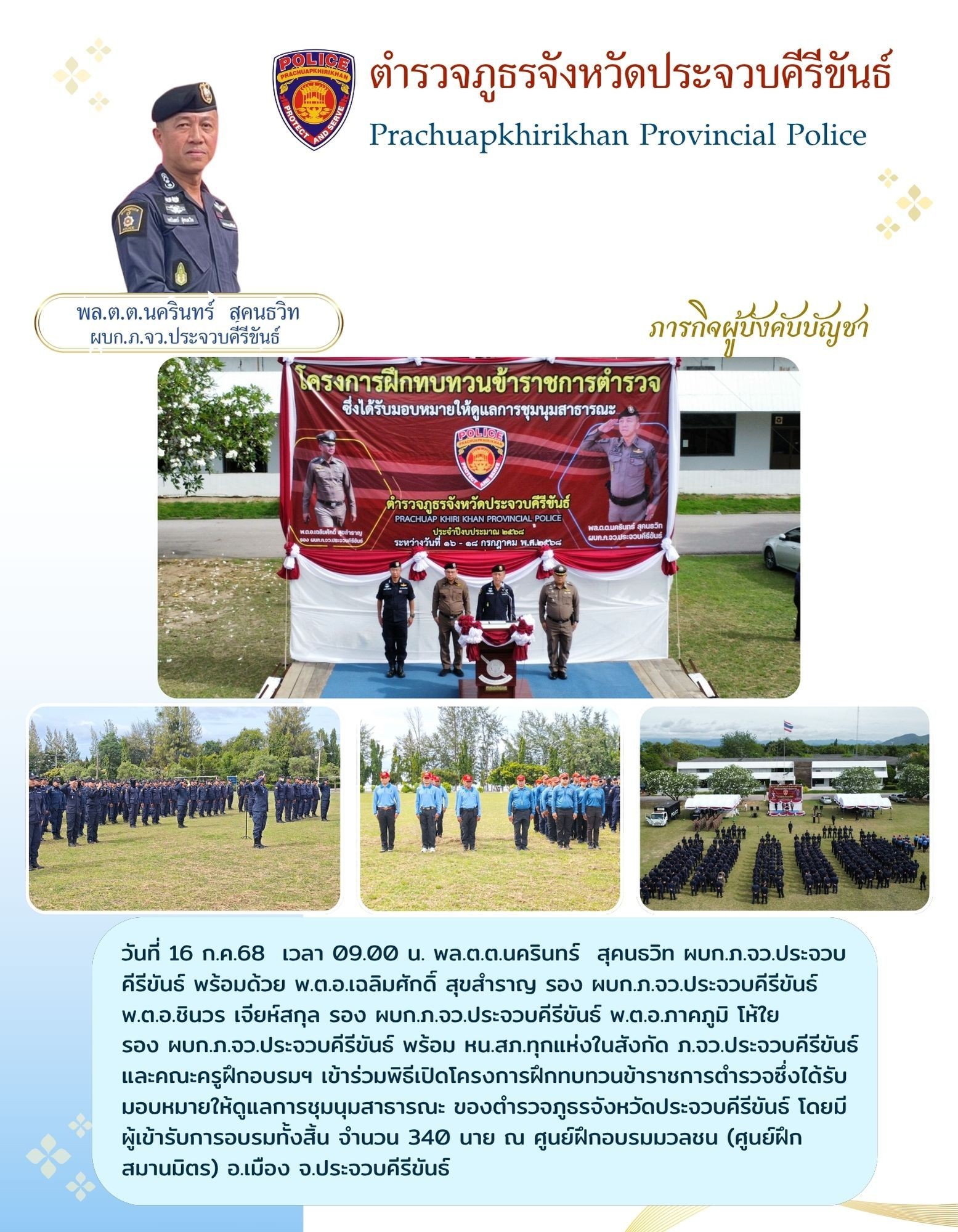 วันที่ 16 ก.ค.68 เวลา 09.00 น. – พล.ต.ต.นครินทร์ สุคนธวิทผบก.ภ.จว.ประจวบคีรีขันธ์ พร้อมด้วย &