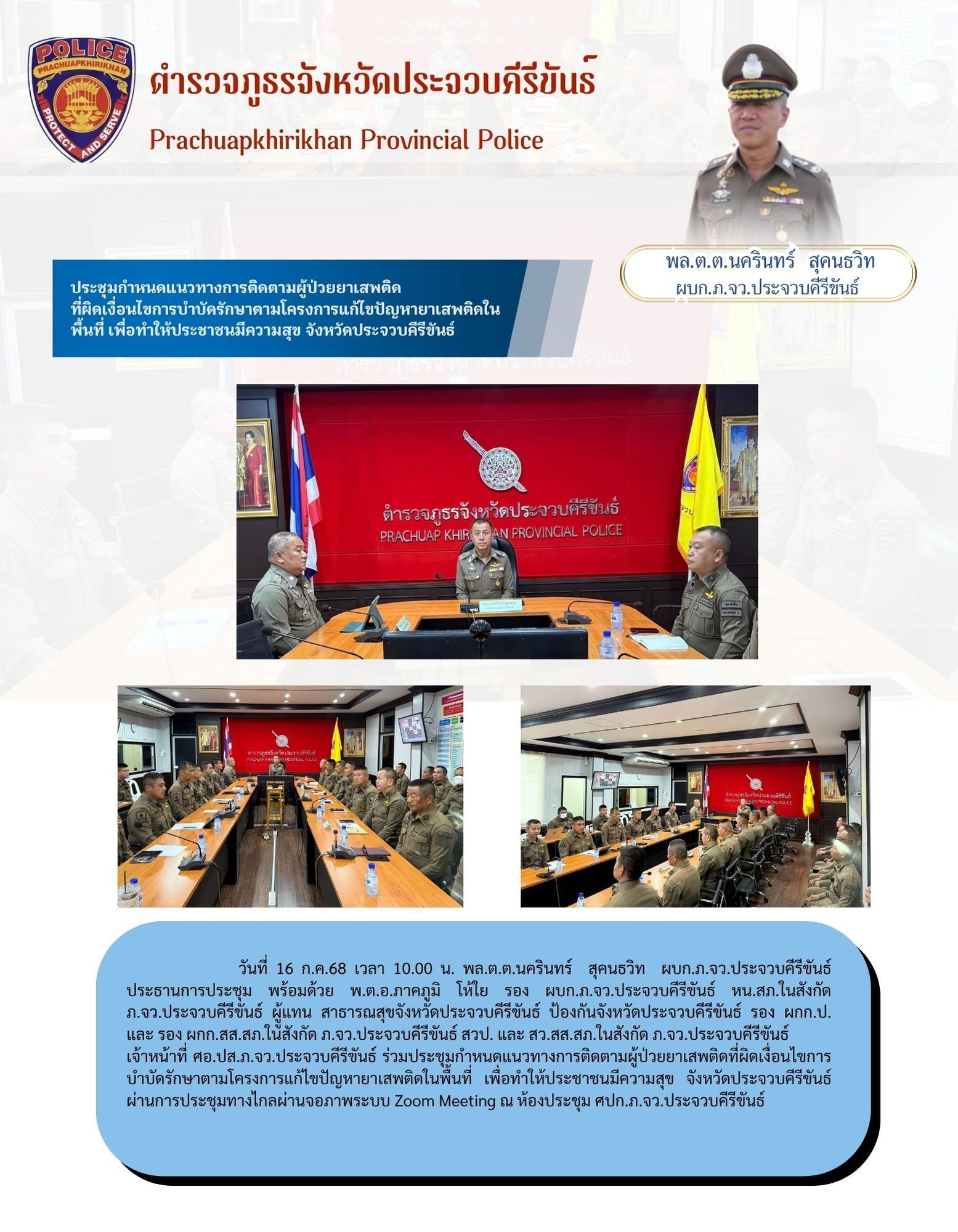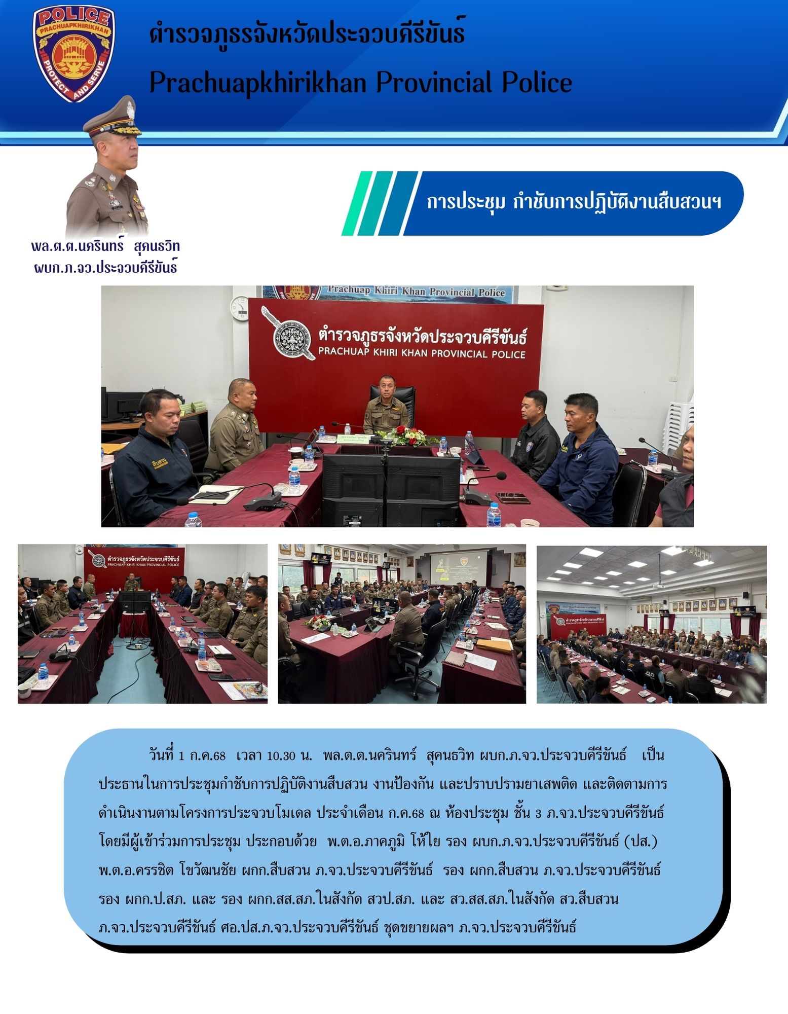 ประชุมกำชับการปฏิบัติงานสืบสวน, งานป้องกัน และปราบปรามยาเสพติด และติดตามการดำเนินงานตามโครงการประจวบโมเดล ประจำเดือน ก.ค.68