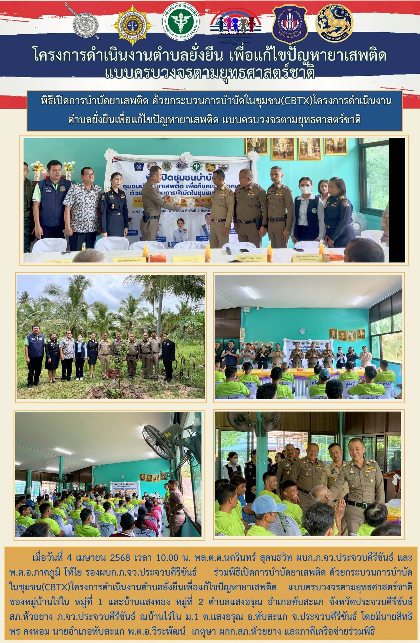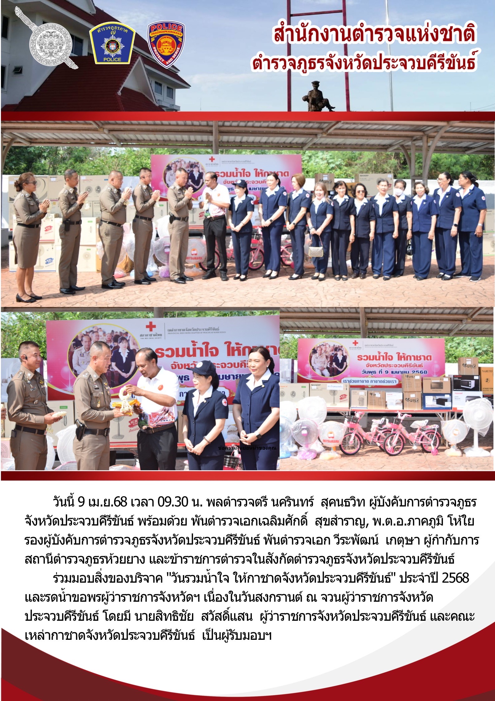 วันที่ 12 เม.ย.68 เวลา 14.00 น. พล.ต.ต.นครินทร์ สุคนธวิท ผบก.ภ.จว.ประจวบคีรีขันธ์ พร้อมด้วย พ.ต.อ.ภา